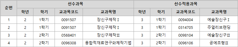 <![CDATA[2025학년도 2학기 수강신청 조건 및 인원 제한 교과목 안내]]> 2025학년도 2학기 수강신청 조건 및 인원 제한 교과목 안내 1. 전체 안내사항 ---필수 교과목 수강 관련 본과생 문의 dyneii@kookmin.ac.kr ---※ 전체학년 수강신청일에 추가 TO 열리는 교과목인지 반드시 확인할 것. ---각 교과목 수업계획서 비고란에서 수강신청 조건 확인 가능   2. 교과목별 안내 ---① 주얼리메이킹과금속공예Ⅱ ------신입생 우선(강제)배정 / 2025학년도 입학생이 아닌 1학년 학생은 수강신청 필요 ---② 조형원리Ⅱ ------타과생 및 타학년 수강 불가 ------신입생 우선(강제)배정 / 2025학년도 입학생이 아닌 1학년 학생은 수강신청 필요 ---③ 금속공예Ⅱ, 융합적재료연구와제작기법 ------2학년 수강신청일: 각 분반별 12명 수강신청 가능 ------전체 수강신청일: 총 인원 수에 맞추어 TO 추가 ------※ 본과생 수강 문의 dyneii@kookmin.ac.kr ---④ 장신구제작Ⅱ ------2학년 수강신청일: 각 분반별 10명 수강신청 가능 ------전체 수강신청일: 총 인원 수에 맞추어 TO 추가 ------※ 본과생 수강 문의 dyneii@kookmin.ac.kr ---⑤ 유리공예Ⅰ ------4학년 수강신청일: 수강신청 가능 인원 2명 ------3학년 수강신청일: 8명 TO 추가 (총 10명 수강신청 가능) ------전체 수강신청일: 2명 TO 추가 (총 12명 수강신청 가능) ---⑥ 브랜드와공간기획 ------4학년 수강신청일: 수강신청 가능 인원 15명   3. 문의처: 조형대학 교학팀 금속공예학과 담당 직원 (☎ 02-910-4631 / dyneii@kookmin.ac.kr)]]> Mon, 04 Aug 2025 15:20:50 +0000 무명게시판 2014-08-23 <![CDATA[2025-2학기 수강신청 종합안내]]> 붙임1. 2025-2학기 수강신청 종합안내001 붙임1. 2025-2학기 수강신청 종합안내002 붙임1. 2025-2학기 수강신청 종합안내003 붙임1. 2025-2학기 수강신청 종합안내004 붙임1. 2025-2학기 수강신청 종합안내005 붙임1. 2025-2학기 수강신청 종합안내006 붙임1. 2025-2학기 수강신청 종합안내007 붙임1. 2025-2학기 수강신청 종합안내008 붙임1. 2025-2학기 수강신청 종합안내009 붙임1. 2025-2학기 수강신청 종합안내010]]> Wed, 23 Jul 2025 10:27:49 +0000 무명게시판 2014-08-23 <![CDATA[2024학년도 후기 졸업심사대상자 졸업연기/유예 신청 안내]]> (붙임2) 2024학년도 후기 졸업연기 및 유예신청 안내문001 (붙임2) 2024학년도 후기 졸업연기 및 유예신청 안내문002]]> Tue, 15 Jul 2025 13:41:29 +0000 무명게시판 2014-08-23 <![CDATA[2024학년도 후기(2025년 8월 졸업) 졸업사정 대상자 확인 안내]]> 붙임6. 2024학년도 후기 졸업사정 대상자 확인안내 공지001]]> Tue, 22 Apr 2025 15:30:26 +0000 무명게시판 2014-08-23 <![CDATA[2025학년도 1학기 다전공 신청 안내]]> [ 2025학년도 1학기 다전공 신청 안내 ]